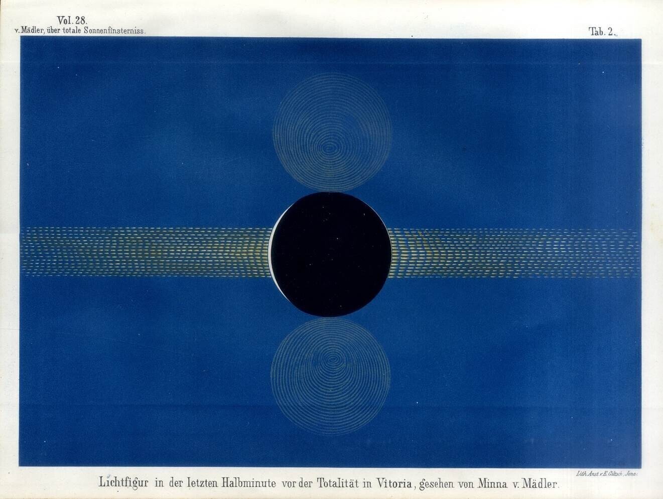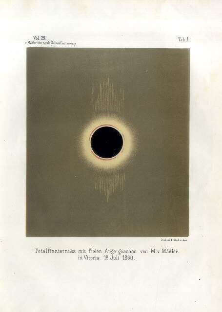 Nii nagu kõik teised astronoomid, murdis ka Johann Mädler parasjagu pead selle üle, kas loited ehk Päikese kromosfääri pursked lähtuvad päikesest või kuust või on hoopis optiline pete. Maailm püüdis lahendada ka Päikese krooni saladust: mis see on, kuidas selle heledust mõõta ja jäädvustada?