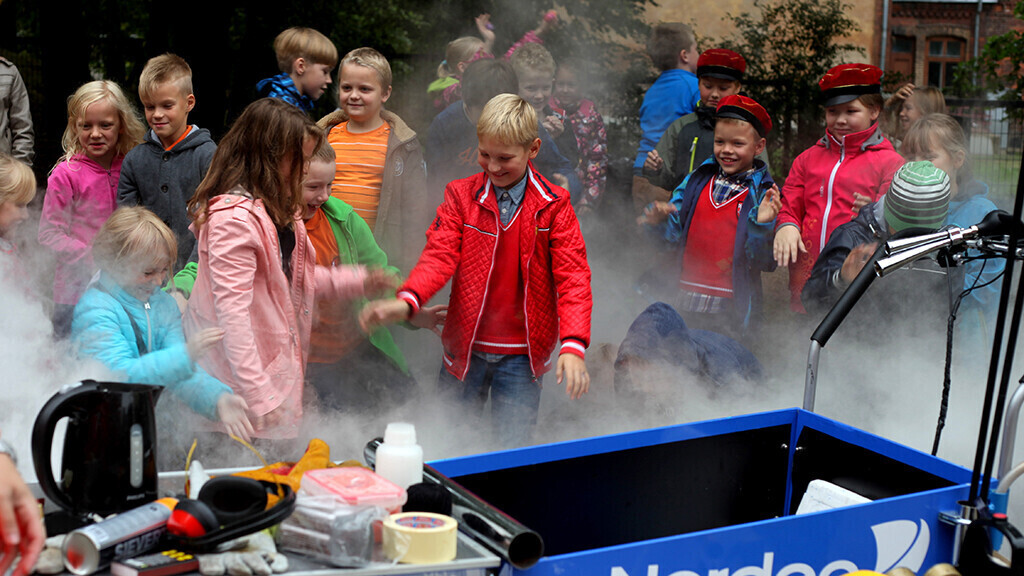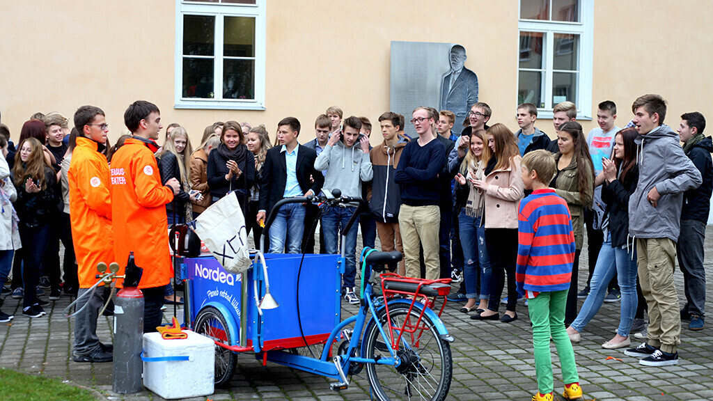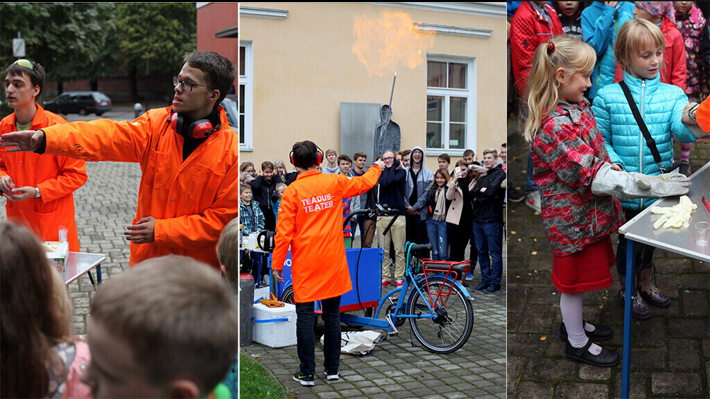 Teadlaste Öö Festivali raames peatuvad sellelgi aastal 21-25. septembril Tartu koolide ja lasteaedade juures teadusratastel sõitvad Ahhaa giidid ja vabatahtlikud, kes lõbustavad pealtvaatajaid efektsete teaduskatsetega.