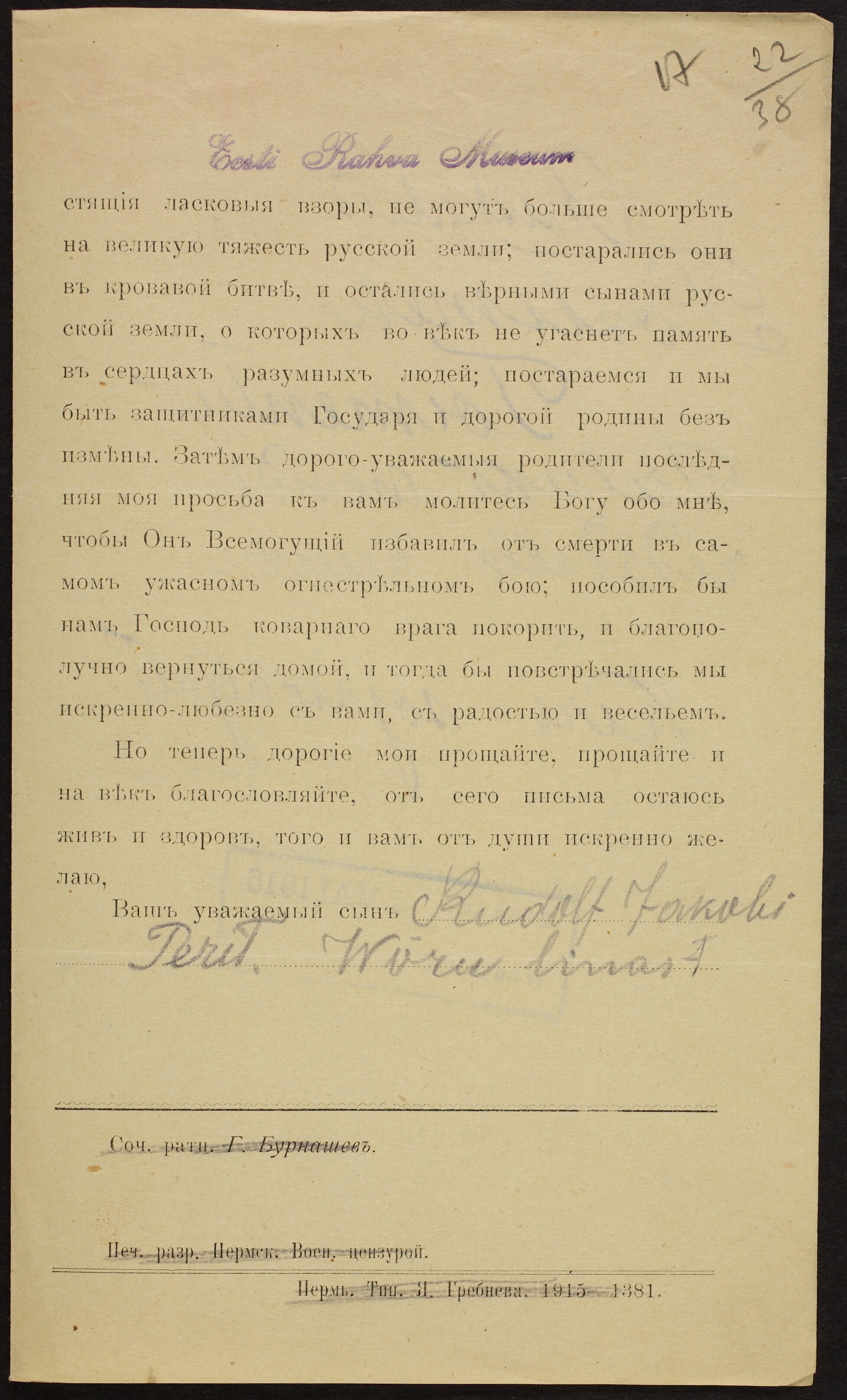 Siit joonistub välja seonduv teema, millega varem ei oldud ehk kokku puututud – tsensuur, nii sõjatsensuur kui ka enesetsensuur. Rindel tuli endale selgelt teadvustada, millest ja kuidas üldse tohib kirjutada ning millest on parem vaikida. Küllap saadi selleski osas rohkem või vähem valusaid mõtte- ja käitumisviisi mõjutanud õppetunde.