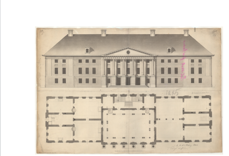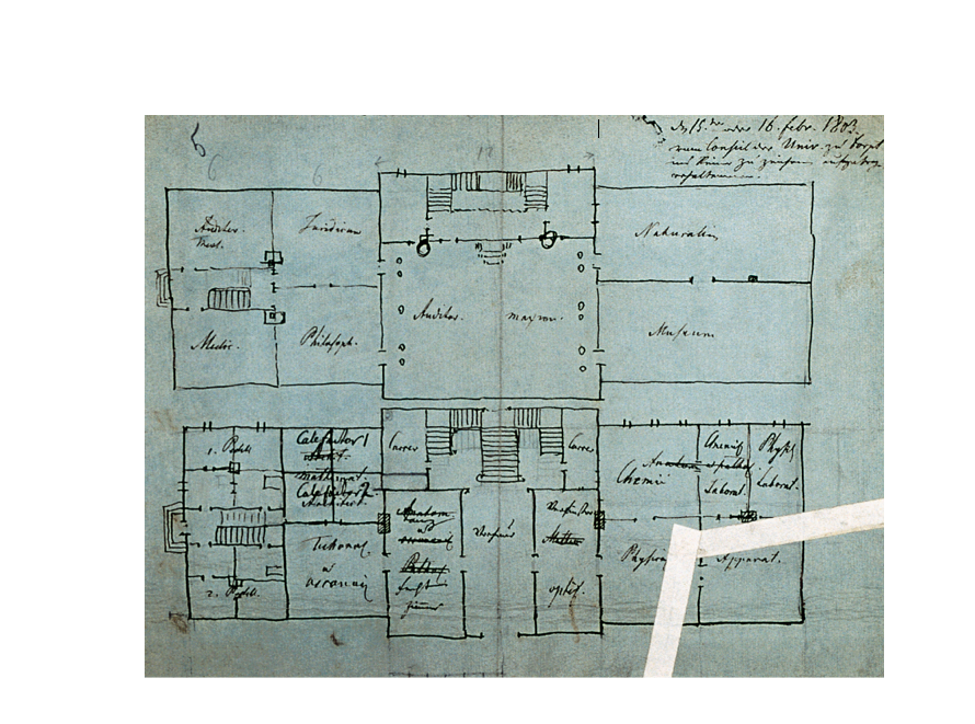 Sellest hoolimata visandas ta paari päeva jooksul väikesele sinakashallile paberile tulevase peahoone esimese joonise ja juba 27. aprillil 1803 said ülikooli projektid ja eelarved kinnitatud – kulunud oli vaid natuke üle kahe kuu.