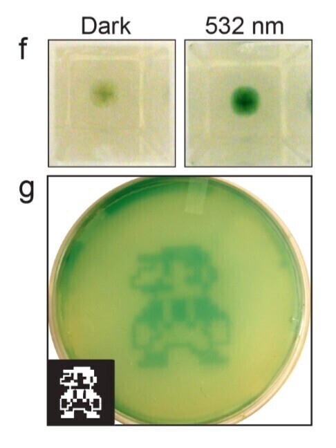Värskes töös töös leidis Voigt, et kaasaegsete meetoditega saab teha palju enamat. Seekord ehitas töörühm bakterite genoomi 18 geenist koosneva võrgustiku. Mikroobid suutsid hakata seepeale tajuma punast, rohelist ja sinist valgust. Samu värvitoone registreerib inimsilm. Valguse mõjul hakkasid bakterid tootma sama värvi pigmente ja helenduvaid valke.
