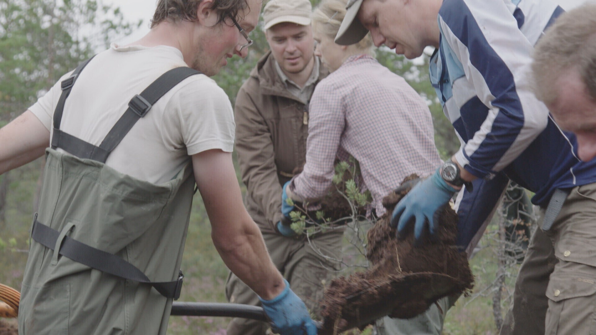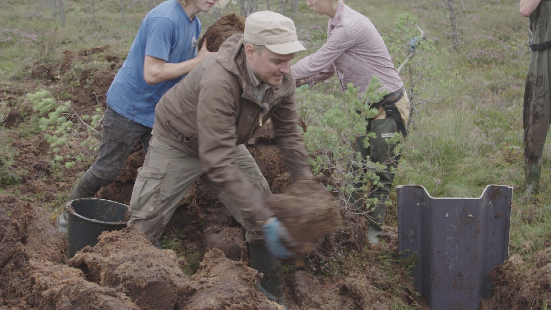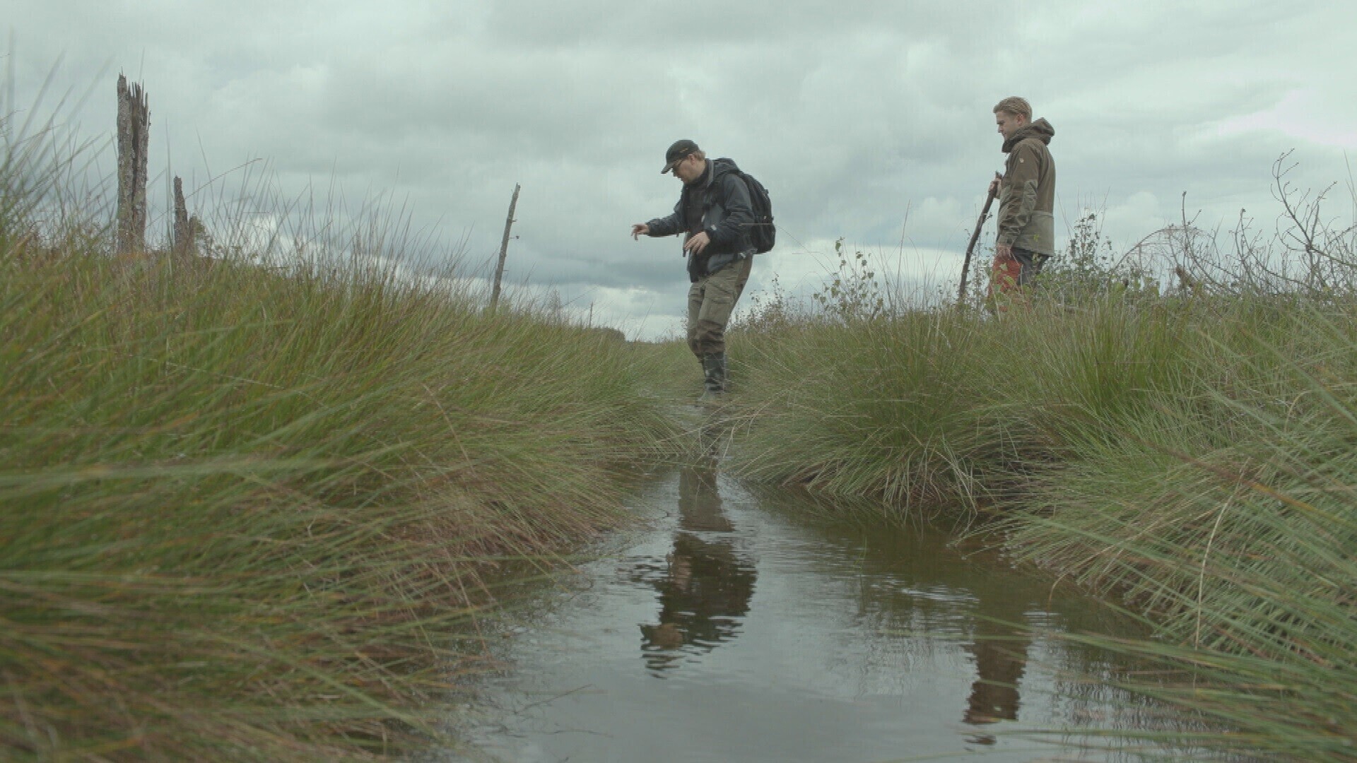 “Me eelkõige taastame soo looduslikku veerežiimi, mis on nõnda, et see veerežiim peaks keskmiselt olema 30 sentimeetrit alla maapinna,” selgitab Jüri-Ott Salm, soid taastama tulnud keskkonnakaitsja. Kraavi vaadates on selgelt näha, et seal on vesi üle poole meetri sügavusel. Mõte ongi esmalt taastada veerežiim, mida saab teha paisude rajamisega. Seejärel tuleb juba kõik muu tagasi.