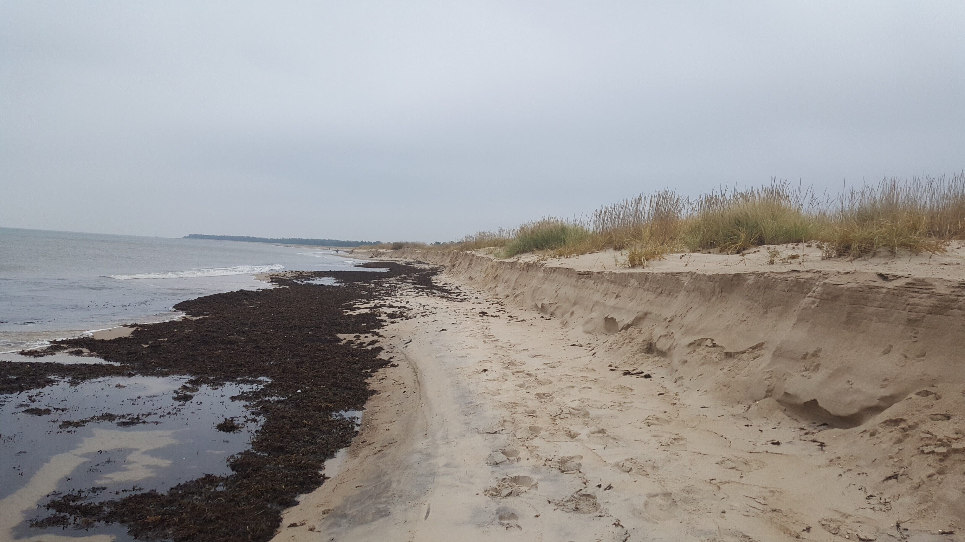 "Käisime eile (pühapäeval - toim) perega Nõva kandis Peraküla rannas. Torm oli seal tohutus koguses liiva merre uhtunud. Seda, milline oli rand enne, näeb kasvõi guugeldades," kirjutas rannast fotod teinud Triin Loogma.
