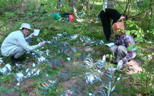 Piltidel on Mari Moora välitöödel kogumas krohmseente proove. Krohmseened on taimejuurtel elavad tillukesed seened, mis on mutualismis ehk vastastiksuhtes taimega. Autor: Martin Zobel