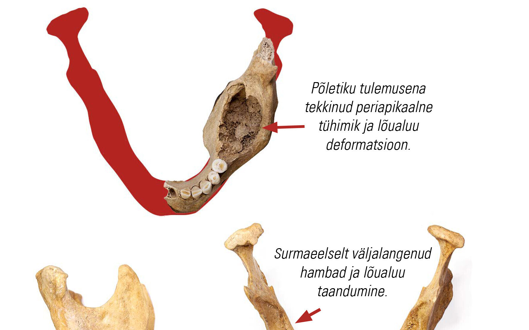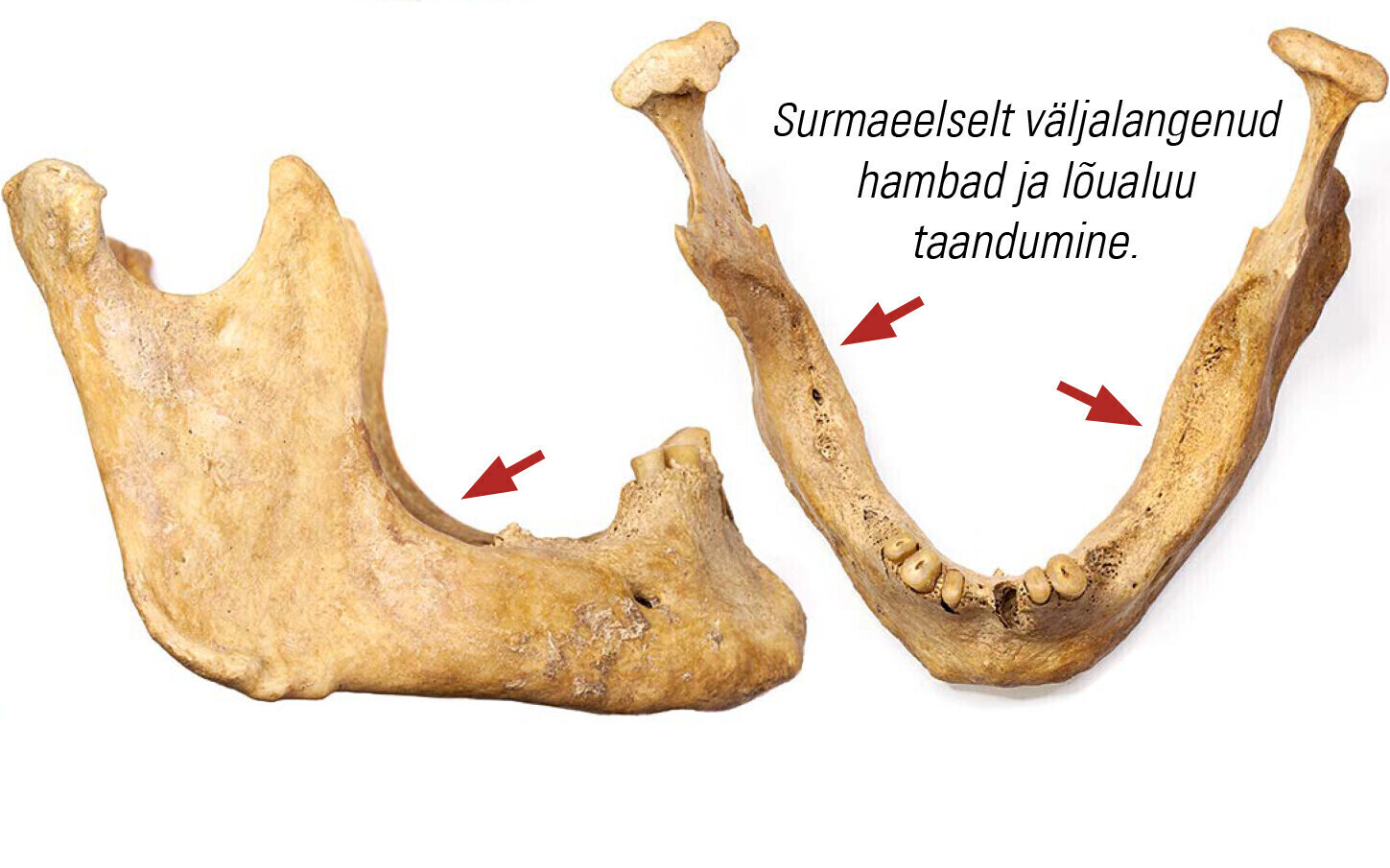 Tühimikke, lõualuude taandumist ja eluajal väljalangenud hambaid täheldati ligikaudu kolmandikul.