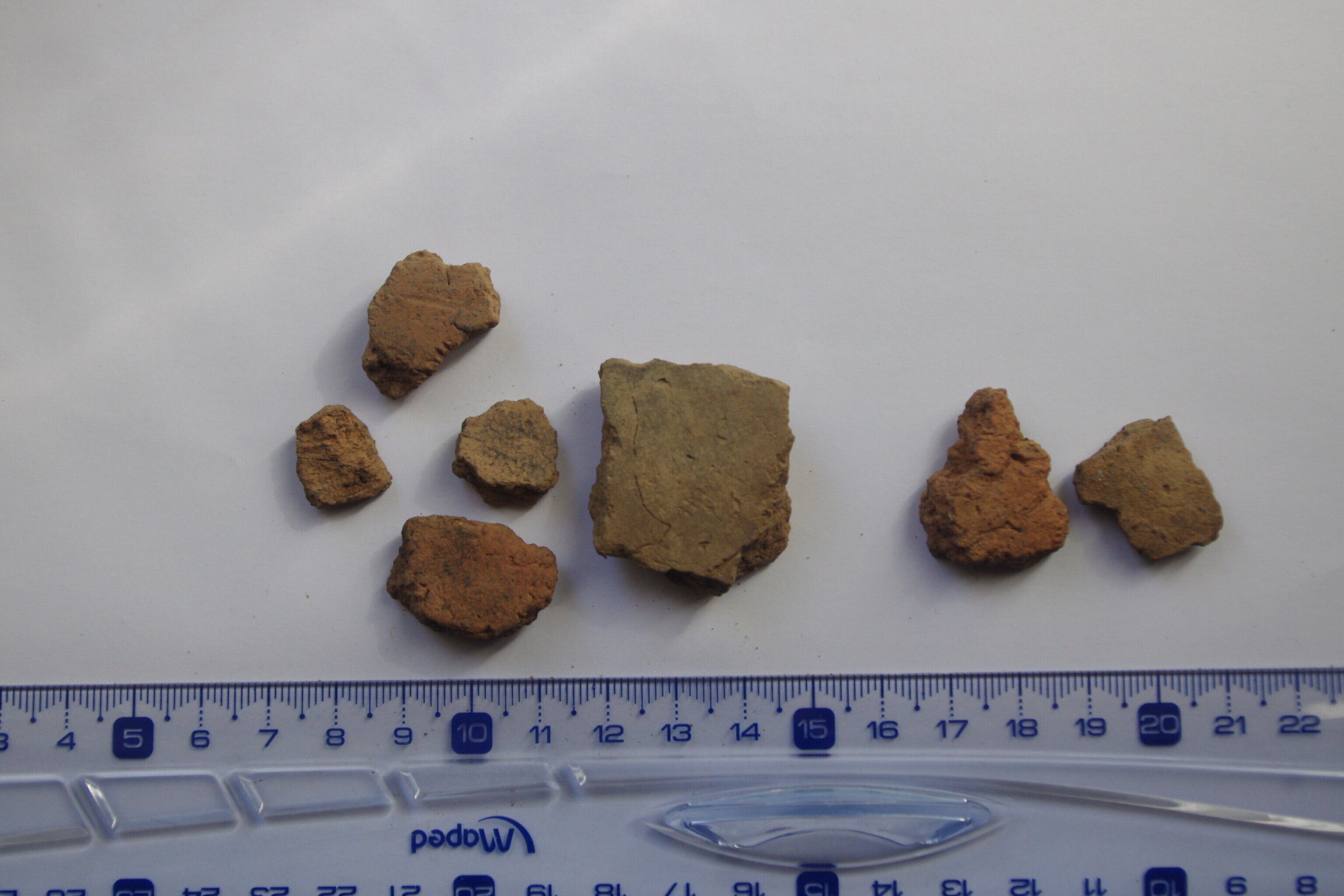 Praeguseks on leitud nöörkeraamiliste ja tekstiilkeraamiliste savinõude tükke. Nöörijäljenditega nõud valmistati umbes 2500–3000 eKr. Tekstiilkeraamika võib olla samaaegne, kuid pigem hilisem ehk need valmistati umbes 1000–1500 eKr – pronksiajal.