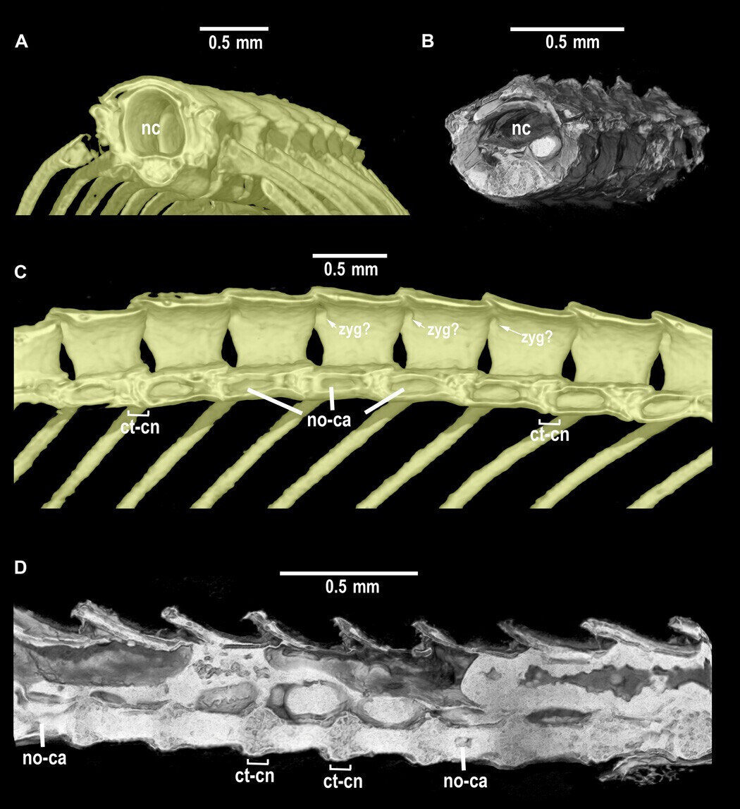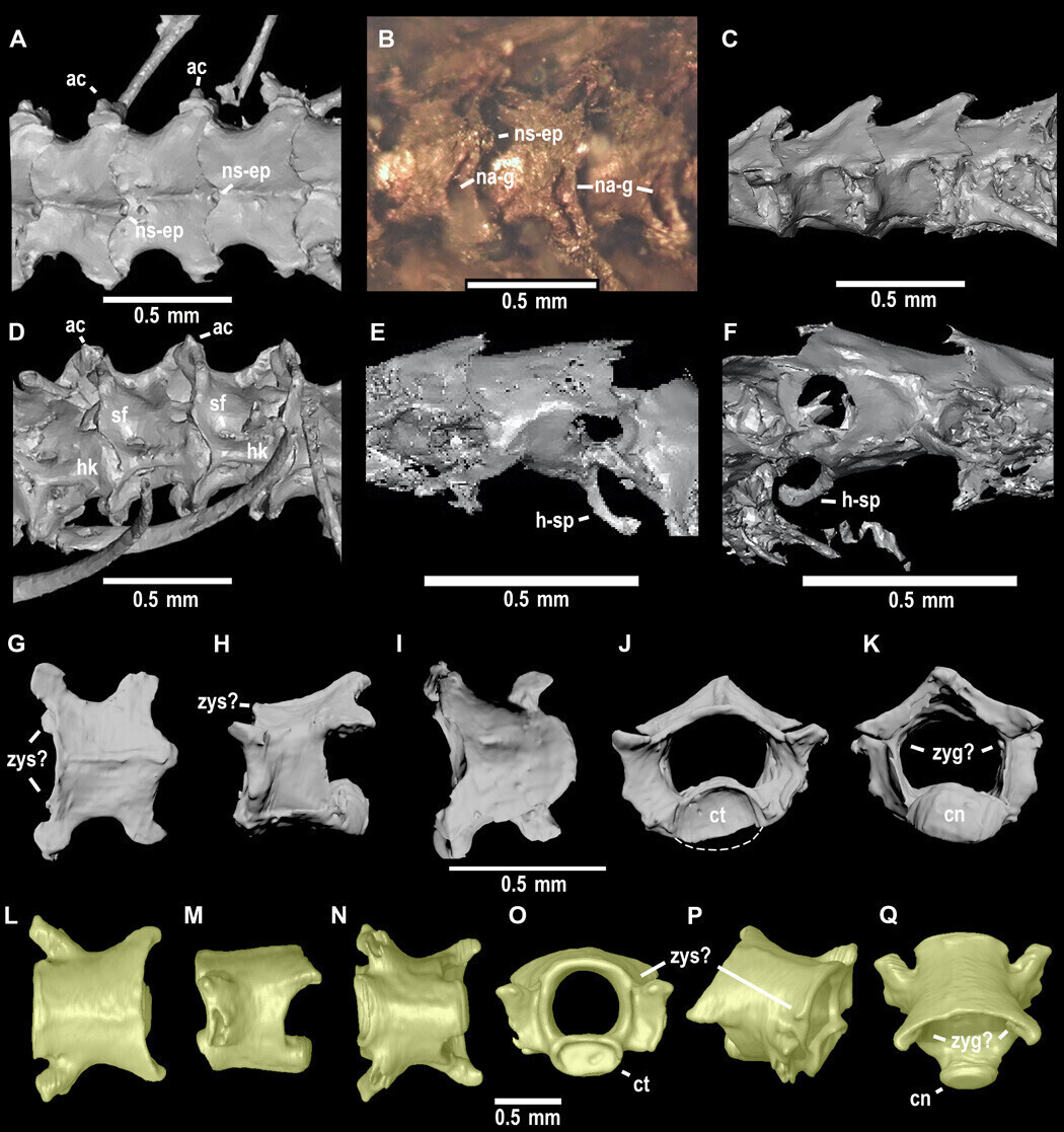 Puuvaigu sisse kinni jäänud fossiilil puudus pea ja seetõttu arvasid selle leidjad esiotsa, et tegu on kas tillukese saja- või tuhatjalgsega. Kompuutertomograafiga läbivalgustamisel tulid ilmsiks aga ka luud, mis võimaldasid teadlastel kinnitada, et tegu on tõesti maoga.