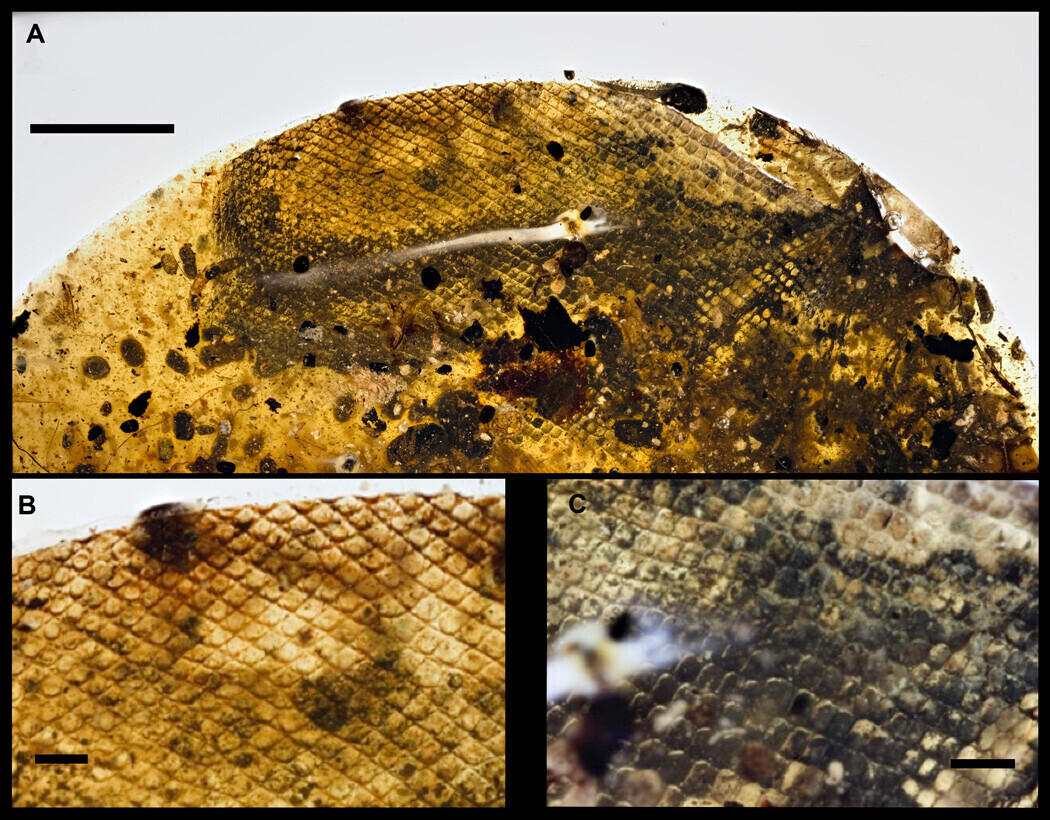 Ühes putkas ulatas müüja talle merevaigutüki, milles väitis olevat kivistunud krokodillinaha. See poleks olnud midagi ebatavalist, sest varem oli doktor Xing sarnastelt turgudelt leidnud merevaigu seest näiteks sulgedega dinosauruse saba ja linnutibu. Kuid selle merevaigutüki uurimisel selgus, et tegu pole sugugi krokodillinahaga. See oli hoopis 99 miljonit aastat vana maoinahk.