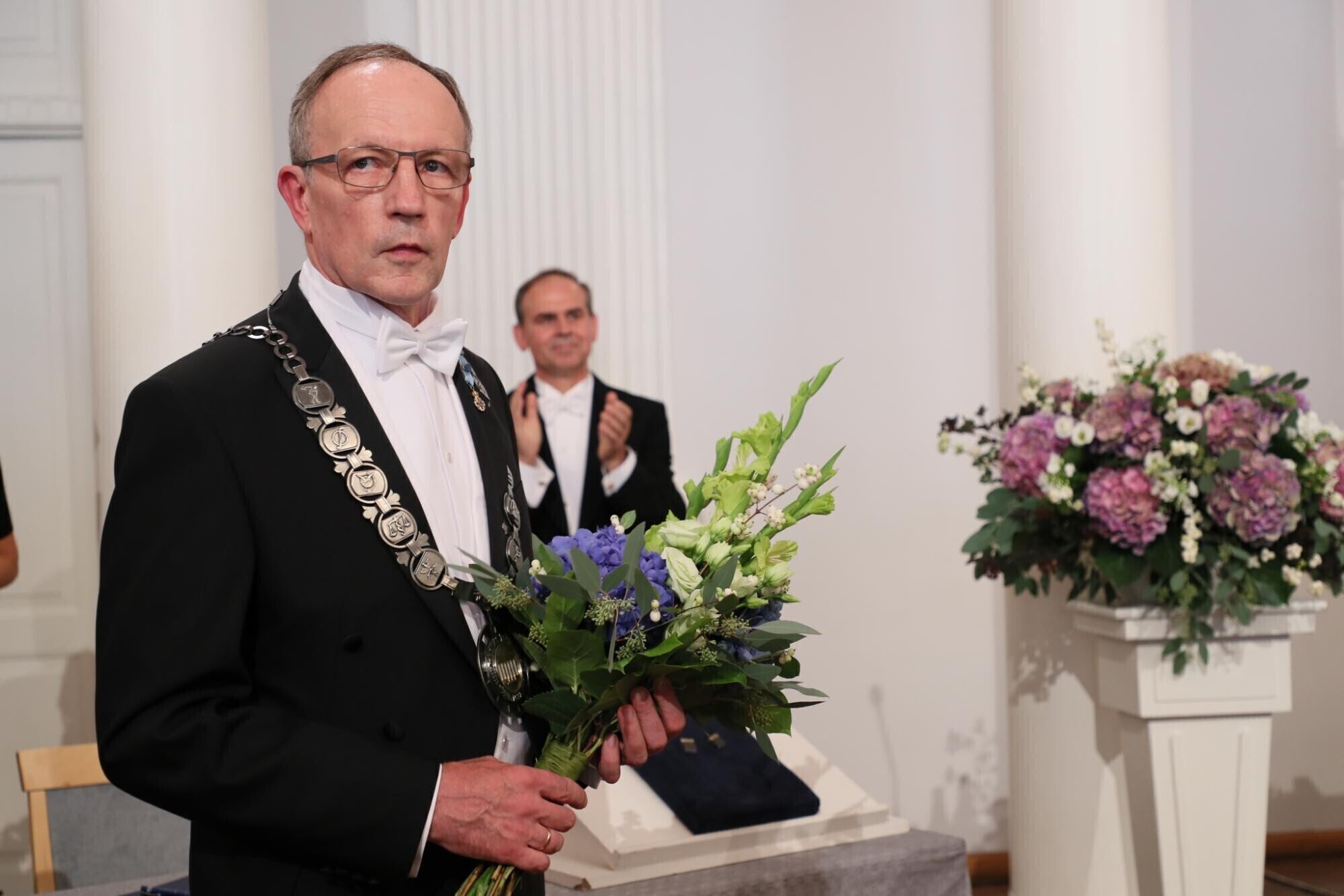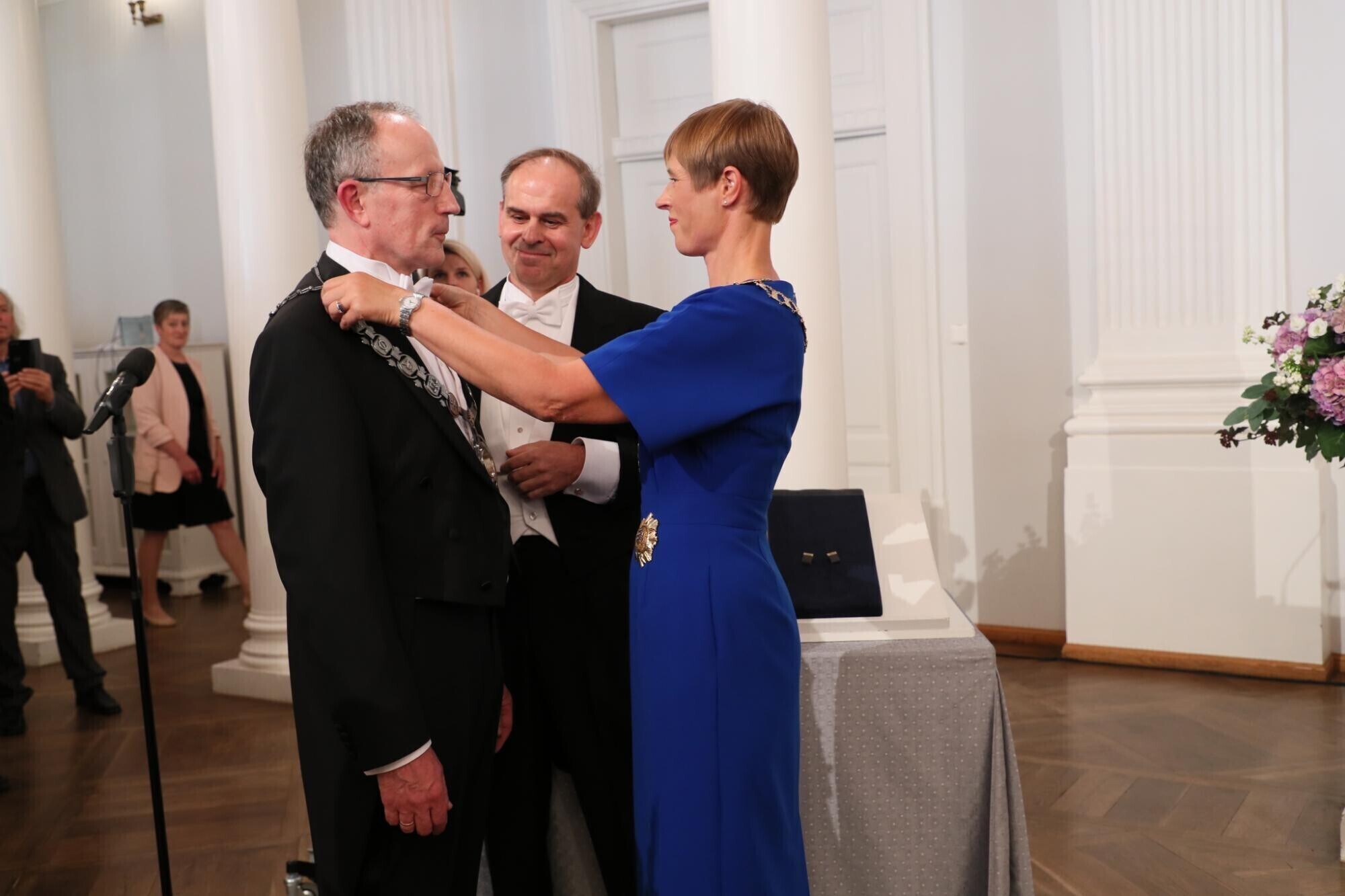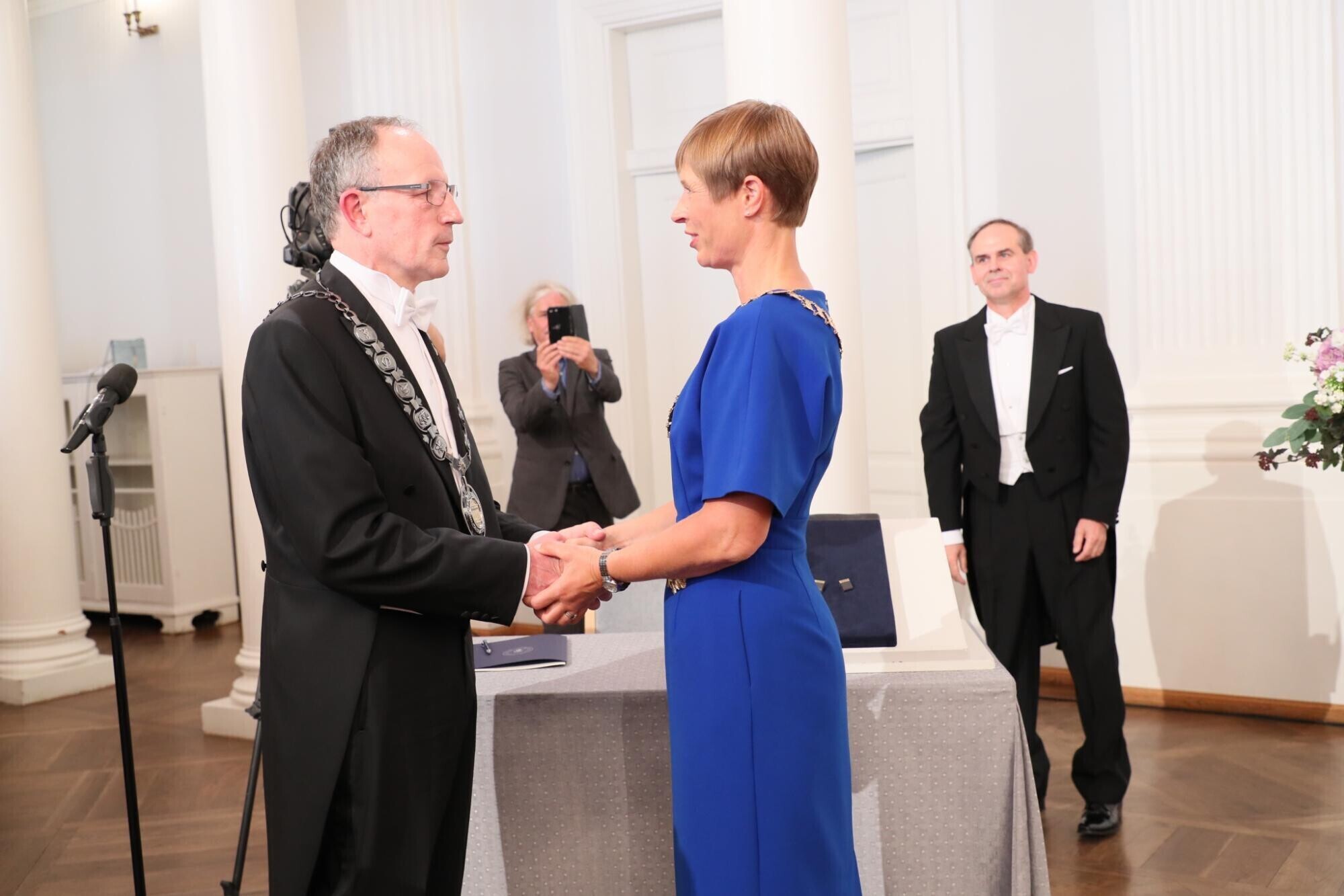 President Kersti Kaljulaid panemas rektor Toomas Asserile kaela ametiraha. Autor: Andres Tennus / Tartu Ülikool