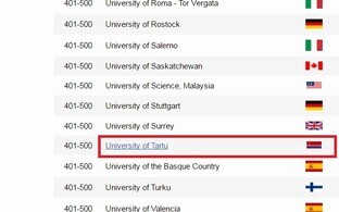 Loodusteadustes on Tartu Ülikool 451-500 kohavahemikus. Teised Eesti ülikoolid seal esindatud pole.