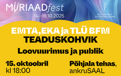 15.10.25 KULTUUR ... Kolmapäeval kell 18 toimub Põhjala tehases aruteluõhtu, kus Eesti Muusika- ja Teatriakadeemia (EMTA), Eesti Kunstiakadeemia (EKA) ja Tallinna Ülikooli BFM-i loovuurijad avavad oma praktika ja teadustöö tagamaid. Ülekannet ürituselt saab jälgida ka Novaatori vahendusel.